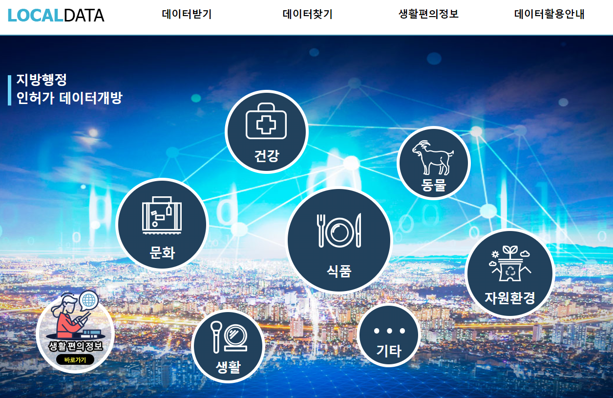 지방행정 인허가 데이터개방 의료기관, 의료기기 데이터 보기 동물, 축산 데이터 보기 게임, 공연, 관광, 문화기획, 노래방, 비디오, 숙박, 여행, 영화, 음악 데이터 보기 미용, 이용, 세탁소/빨래�
