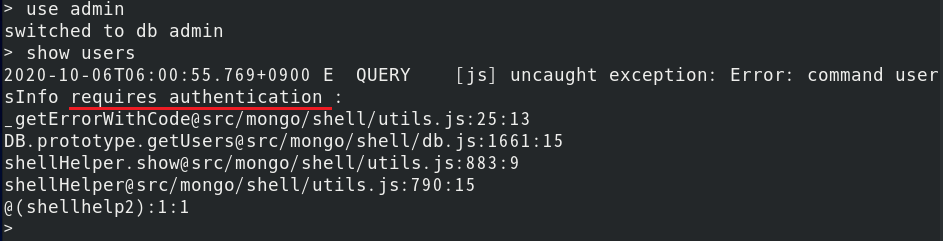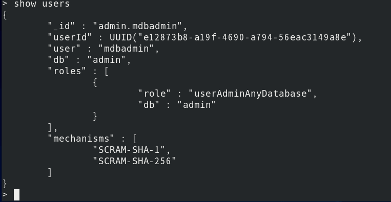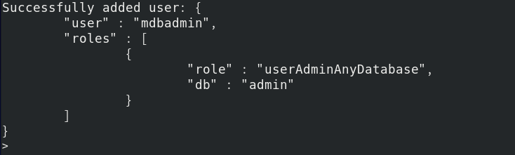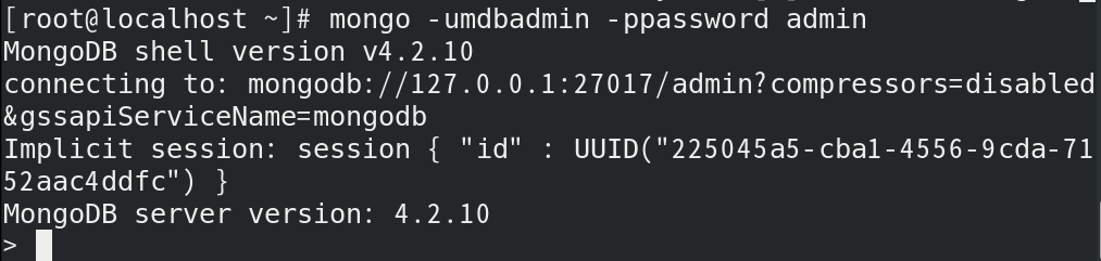 | [root@localhost ~]# mongo -umdbadmin -ppassword admin |