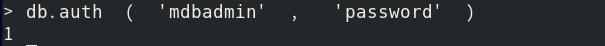 | > db.auth ( 'mdbadmin' , 'password' ) 1 |