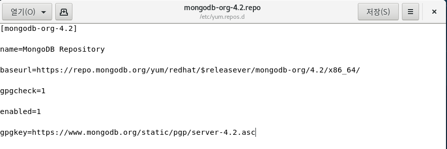 mongodb-org-4.2.repo 파일에 다음을 입력