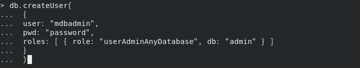- Mongo 데이터베이스에 대한 관리자 사용자 계정을 만듭니다.