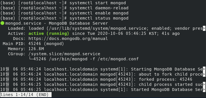 | [root@localhost ~]# systemctl status mongod |