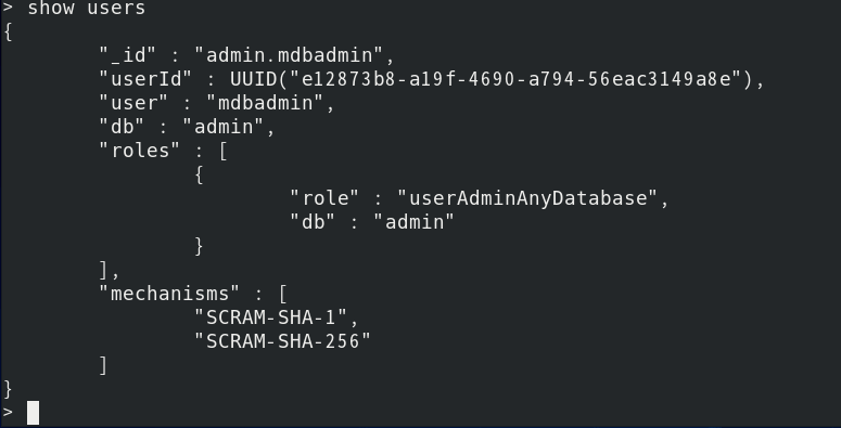 이제 CentOS 8 시스템에 MongoDB가 설치되어 있어야합니다. 또한 무단 액세스를 방지하려면 보안 관리자 계정이 있어야합니다.