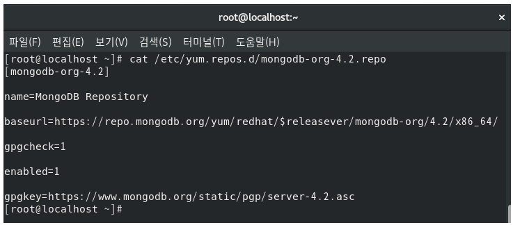 | [root@localhost ~]# cat /etc/yum.repos.d/mongodb-org-4.2.repo |