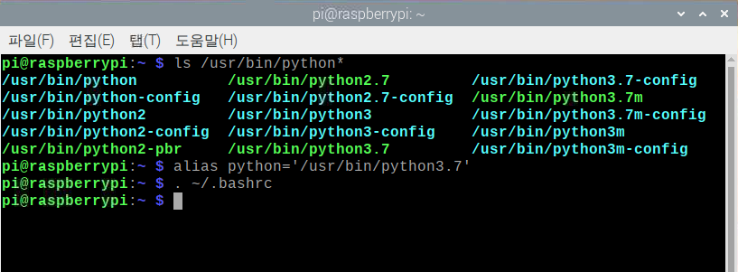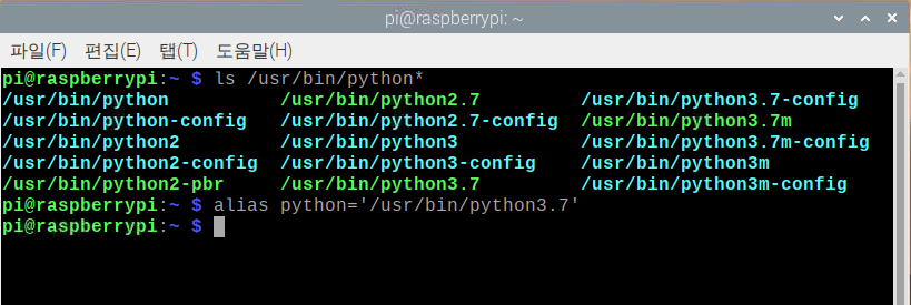 라즈베리파이에서 기본 파이썬 버전변경(2.7 --> 3.7)