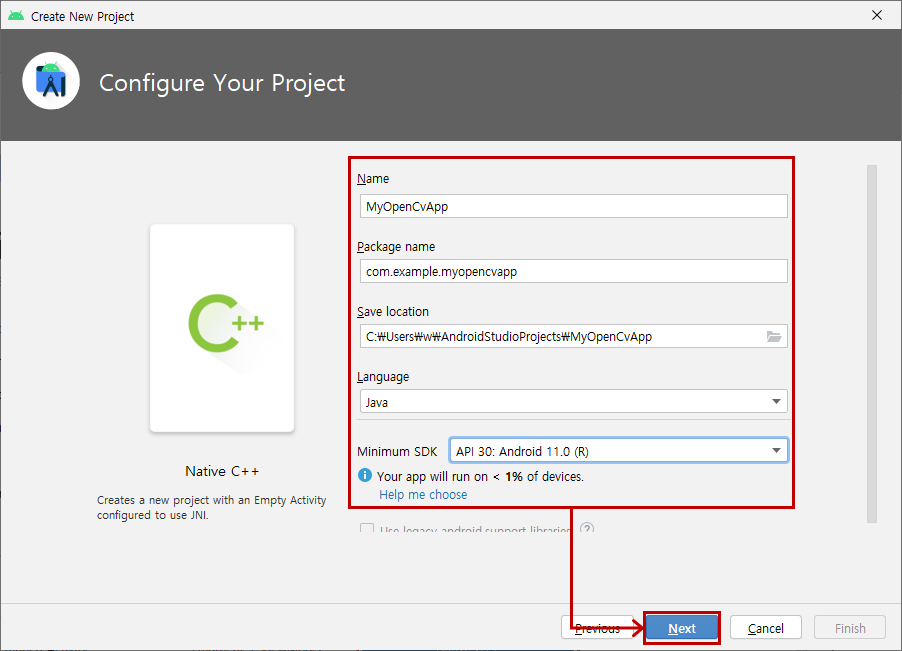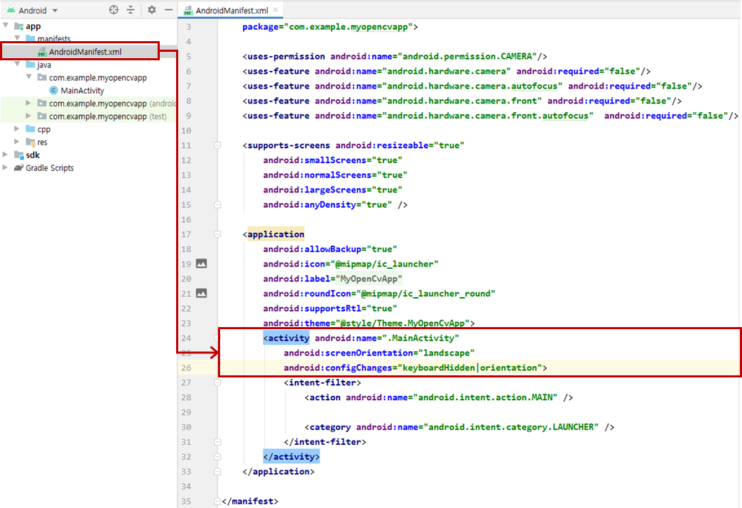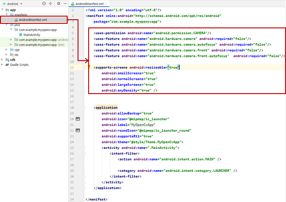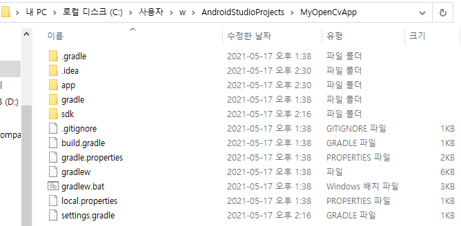 프로젝트 경로 C:\Users\w\AndroidStudioProjects\MyOpenCvApp
