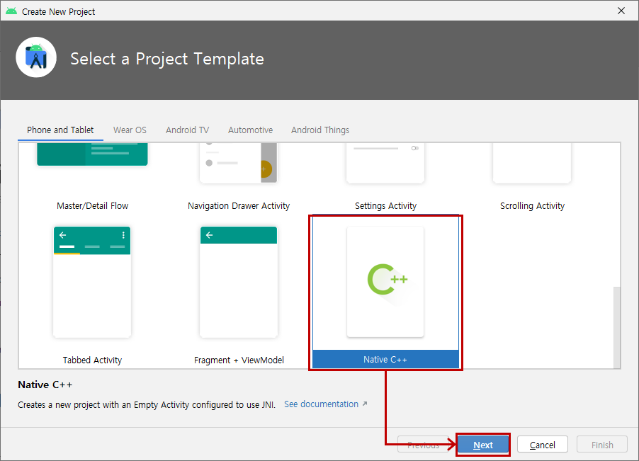 - 새 프로젝트 시작 -> Native C++