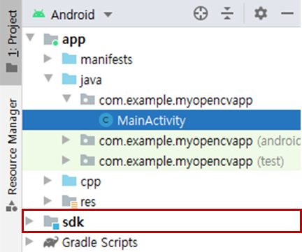 - C:\OpenCV-android-sdk\sdk 폴더 Import