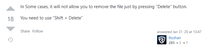3. 어쩌다 검색해보니 shift + delete 로 삭제해 보라는 내용이 스텍오버플로에 있었다.(해결됨)