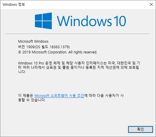 하지만 윈도우즈 10 버전 1909 이런식으로만 나옴