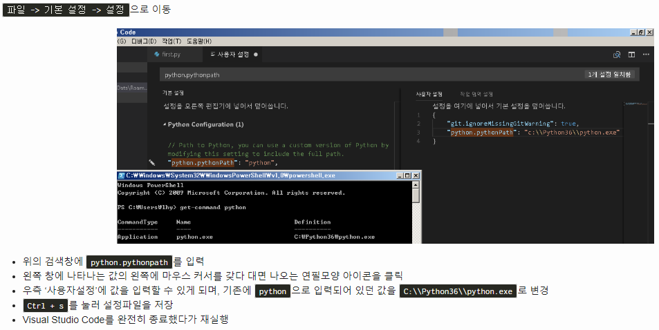 1) 파이썬 설치 : 설치자료 참고하여 설치(주의사항)