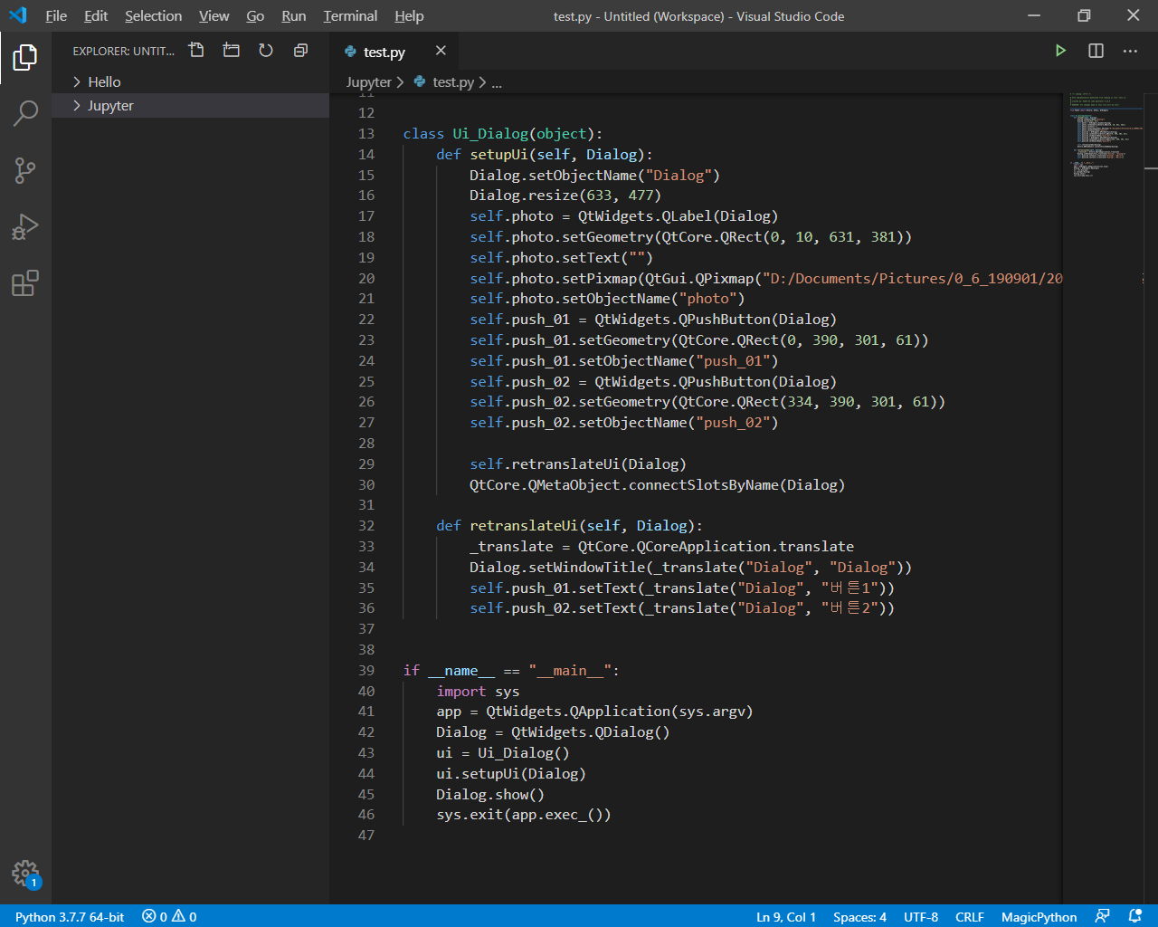 pyuic5 –x test.ui –o test.py 다음과 같이 입력한다.