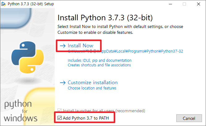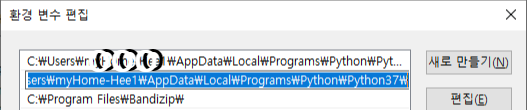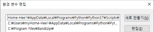 C:\Users\USER_NAME\AppData\Local\Programs\Python\Python37 를 PATH에 설정