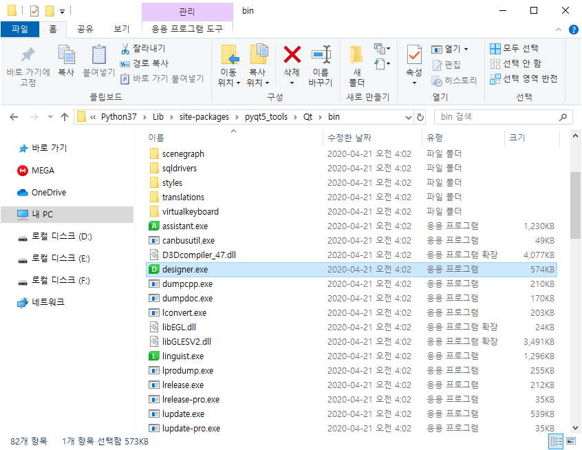 - 단축아이콘 만들기(designer.exe를 찾아 단축아이콘 생성)